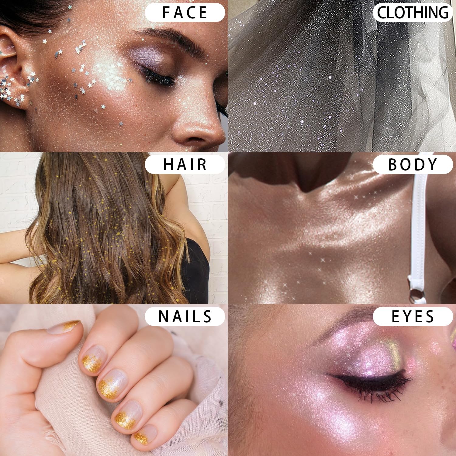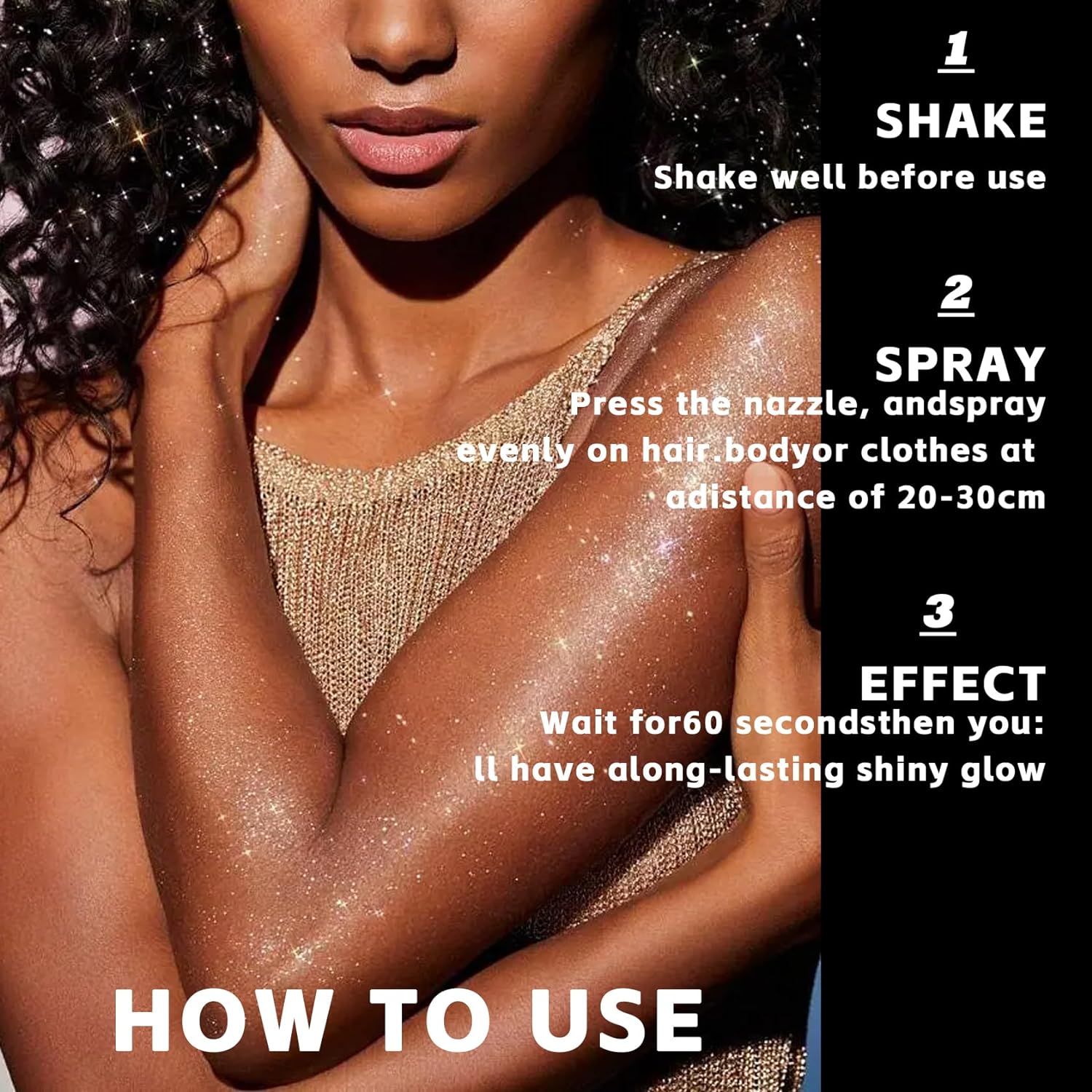 This glitter spray is suitable for body to feet: hair, body, face, clothes. Spray some glitter on the brow bone to brighten the eyes, or sprinkle some on the collarbone and shoulders to add sparkle and extra glamour to your style.