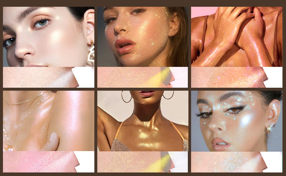 The spray's shape adopt similar to the perfume spray pump design, you just need to lightly press the pump, the shiny highlighter powder will be sprayed on your skin, which is so easy to use. The exquisite glitter powder bottle is so compact and lightweight to carry that you can easily make up anytime and anywhere.